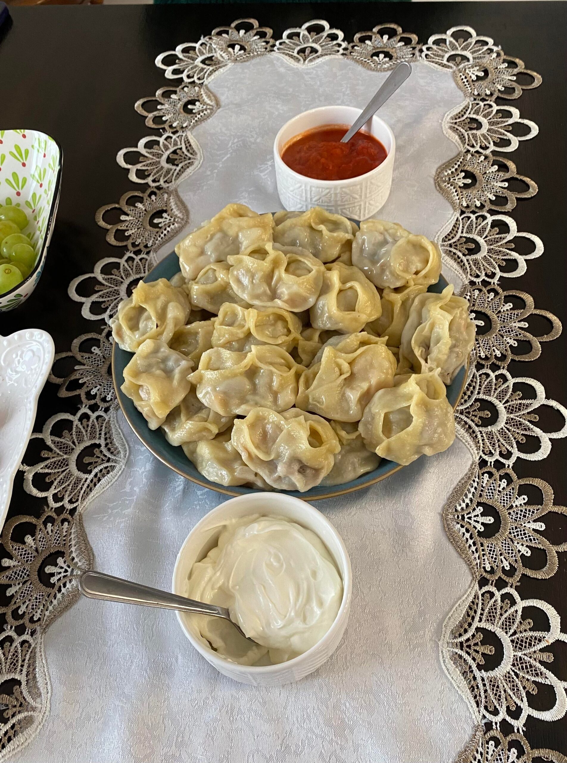 昨夜、義母が作ってくれたマンティ(Manty)を食べたばかり。写真撮っておけばよかった!これは絶対ウズベク料理だ!👍