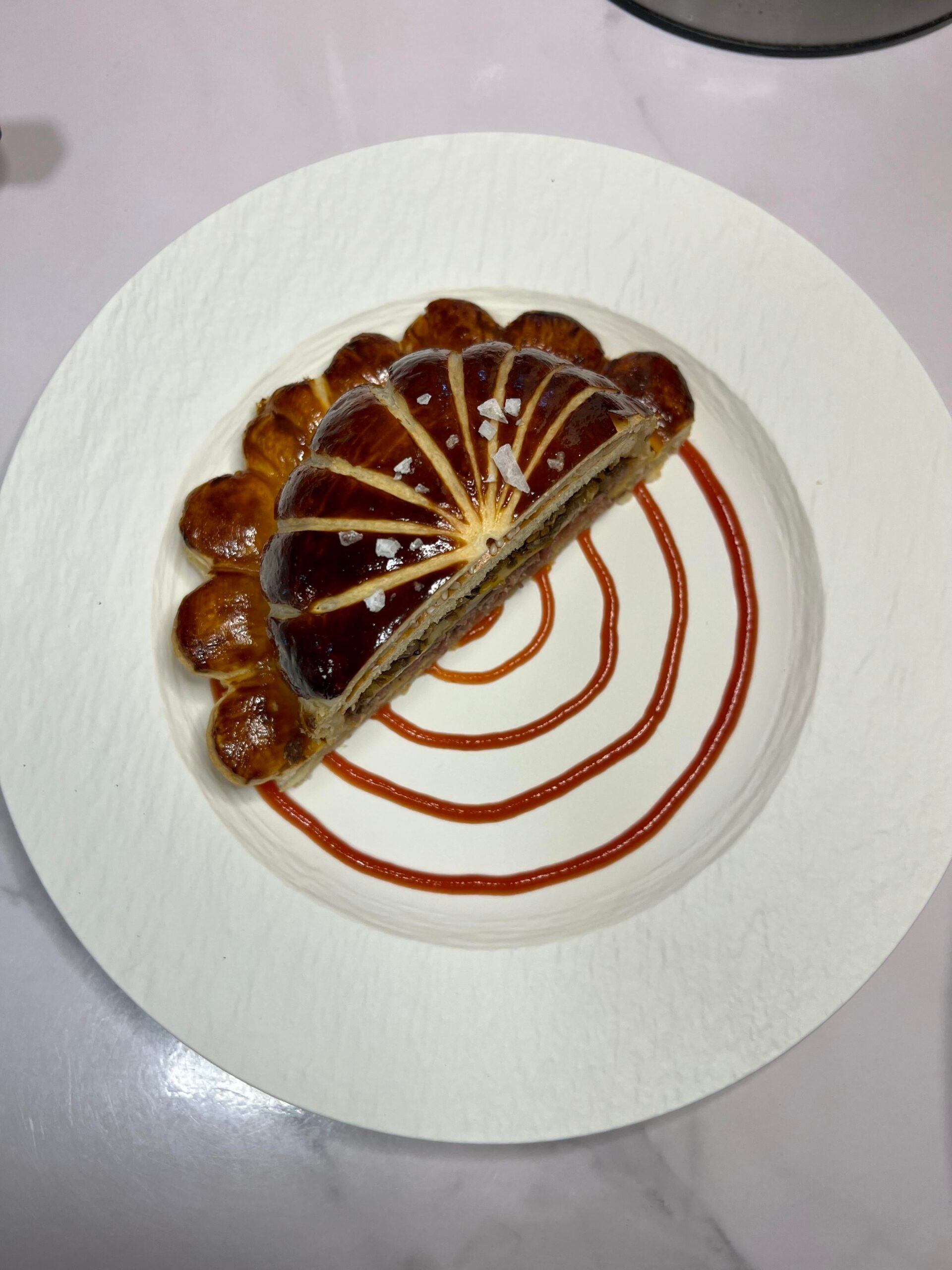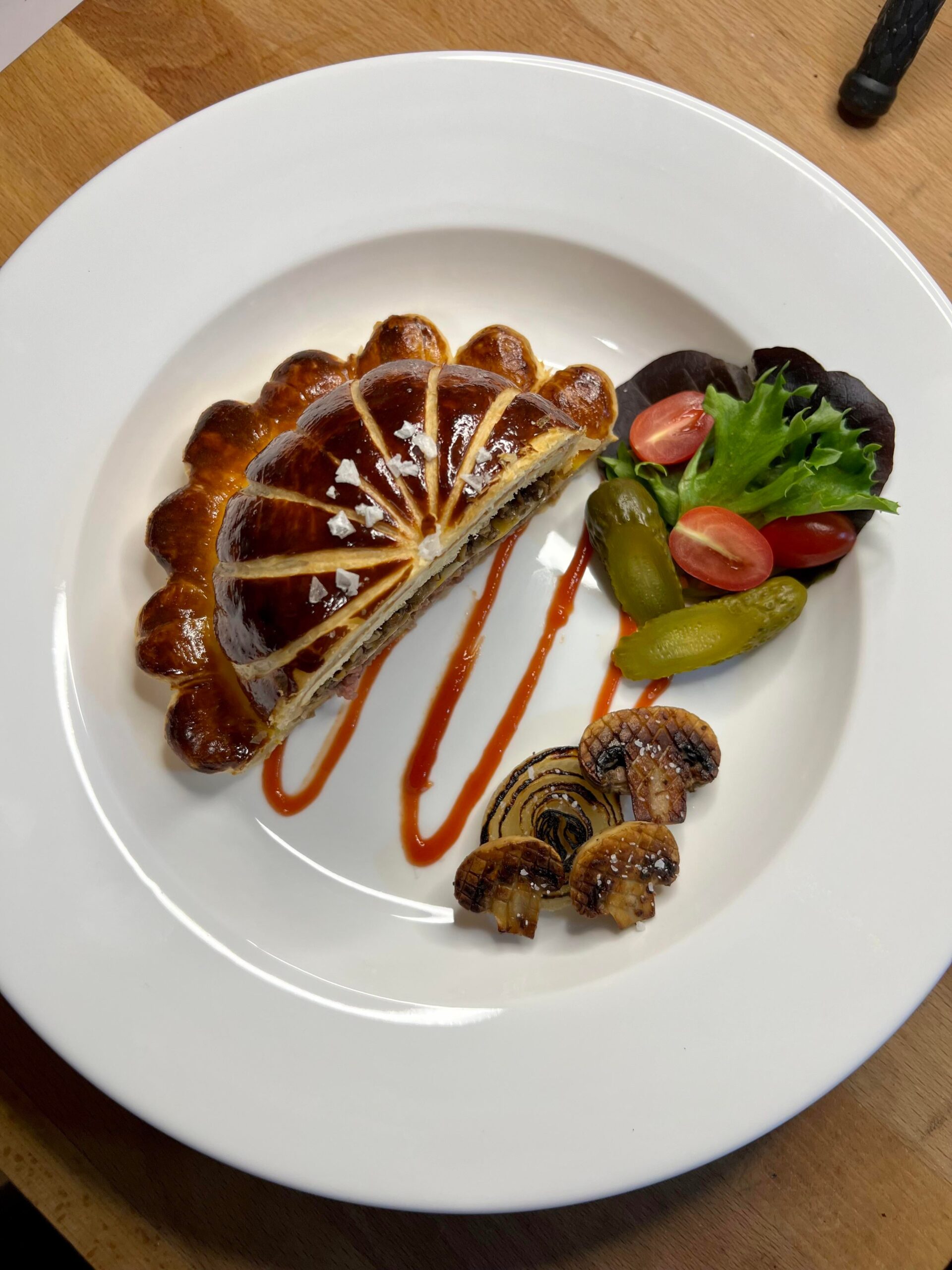 ・キノコのデュクセル、カラメライズドオニオン、ゴージャスな照りのパイ生地が圧巻の完成度。
