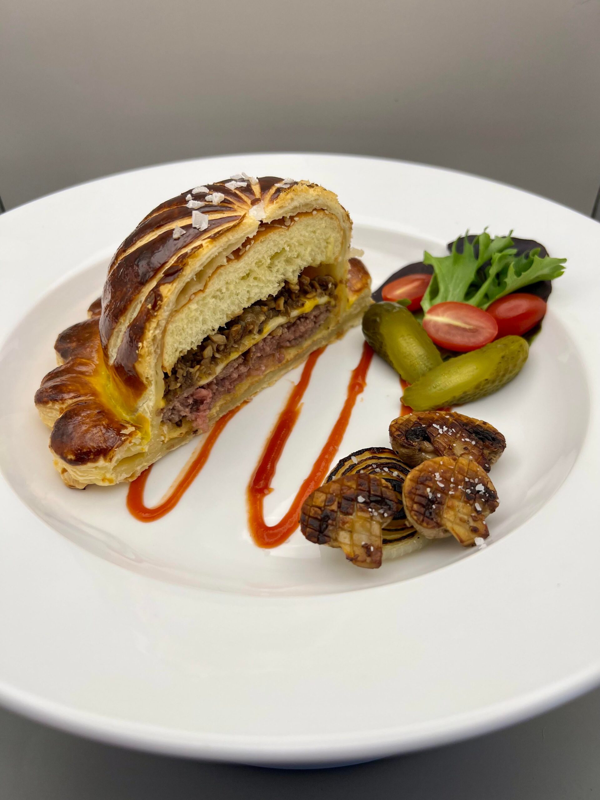 パイ生地のツヤと完成度が最高すぎるし、バーガーをドレスアップするって発想が好き。