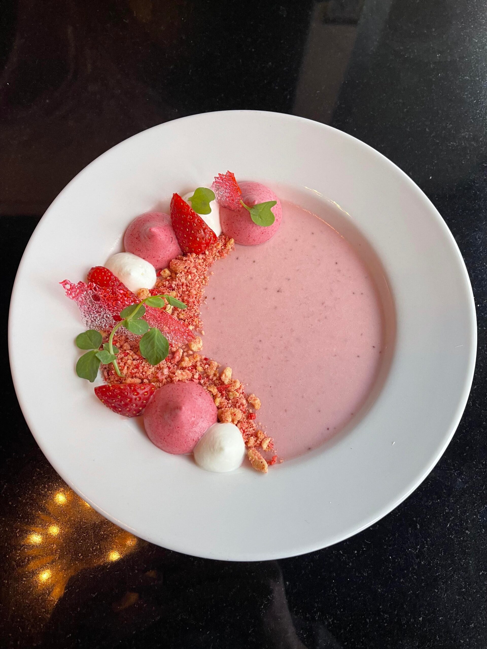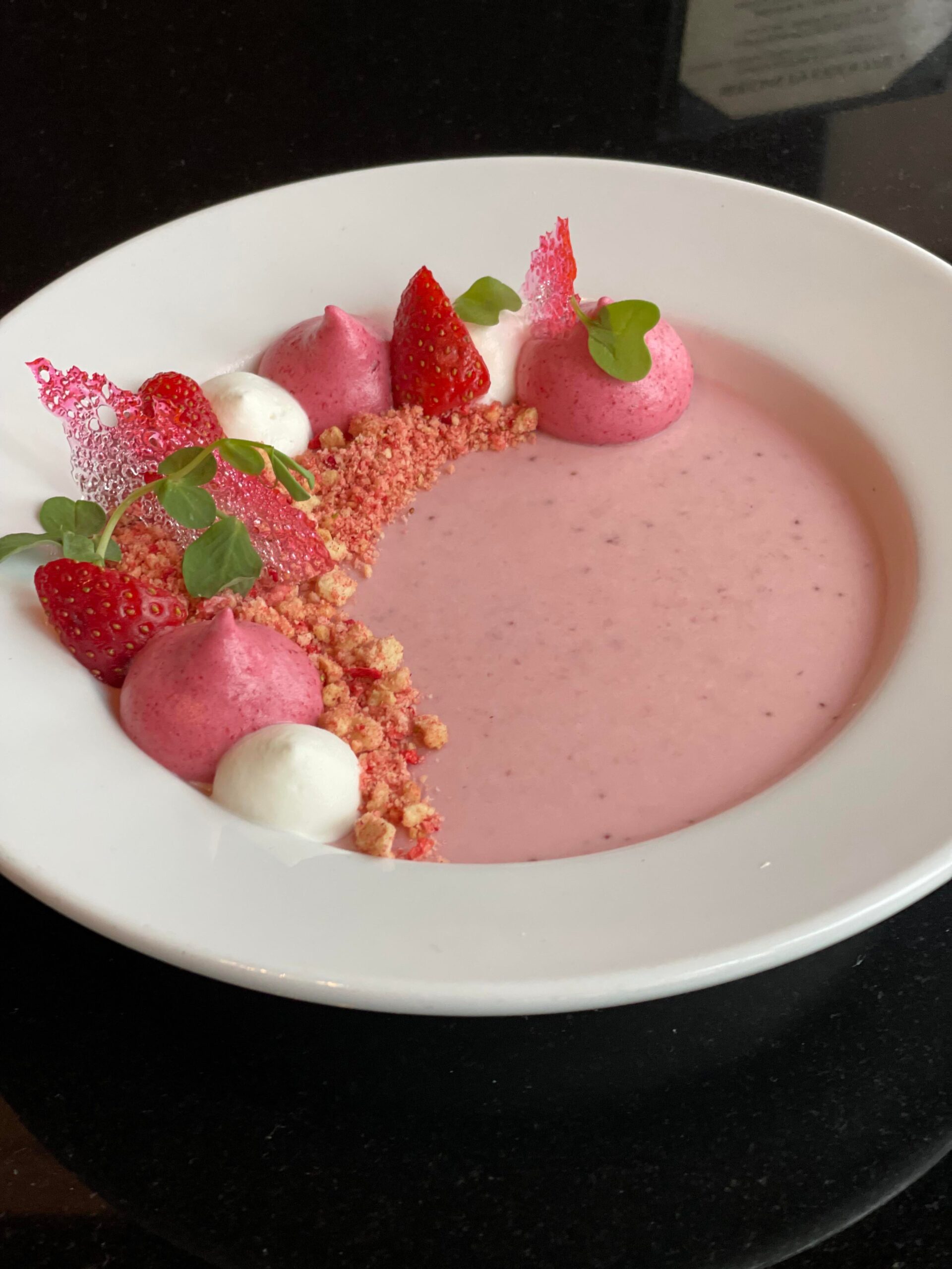 ・イチゴのピューレを使ったパンナコッタに、クランチ・ストロベリーポップのあの味を再現したトッピングが乗った贅沢デザート