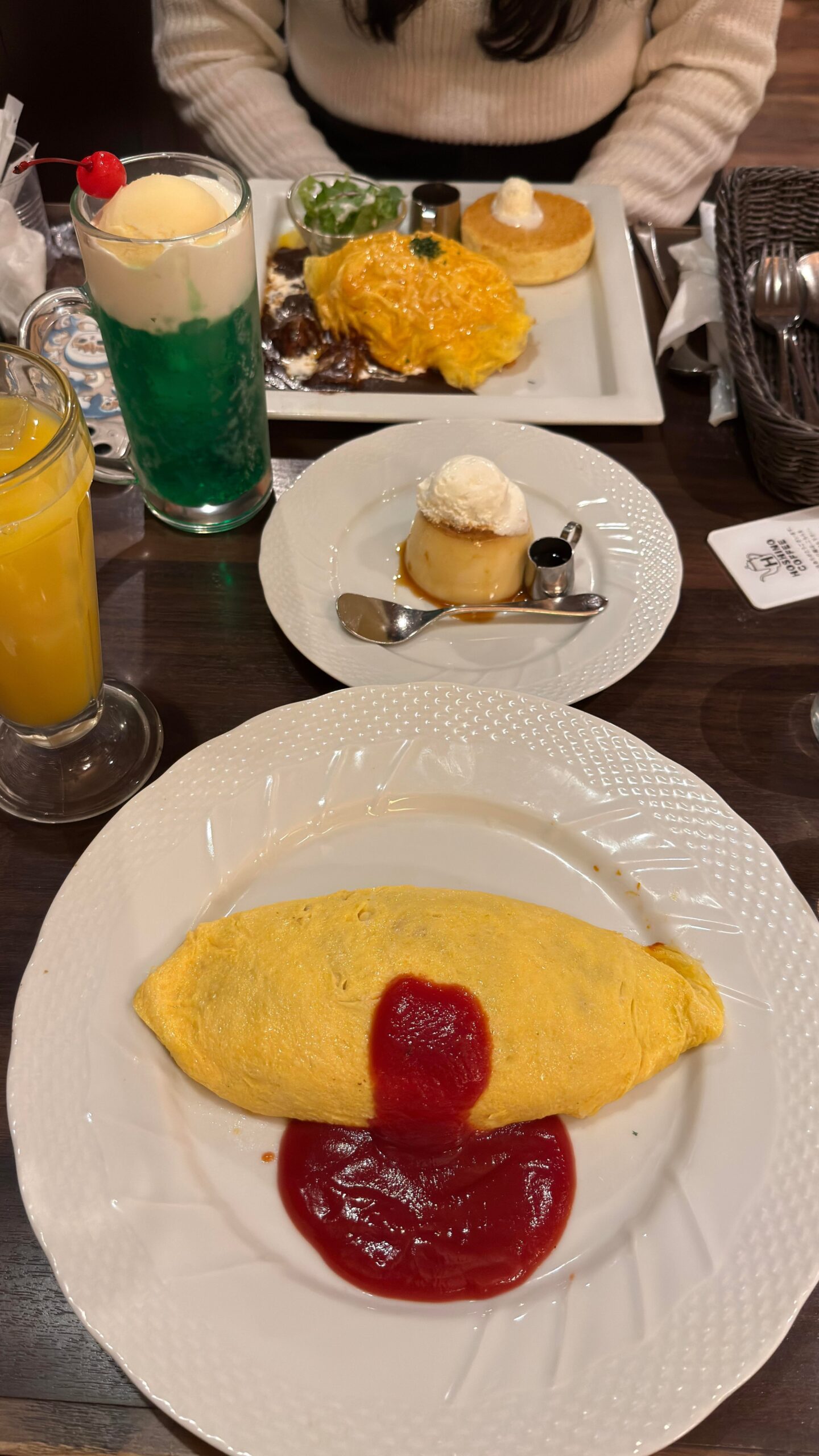 6. オムライス(Omurice)、プリン(Purin)、メロンソーダ(Melon Soda)&ハヤシオムライスセット(Hayashi Omurice Set)