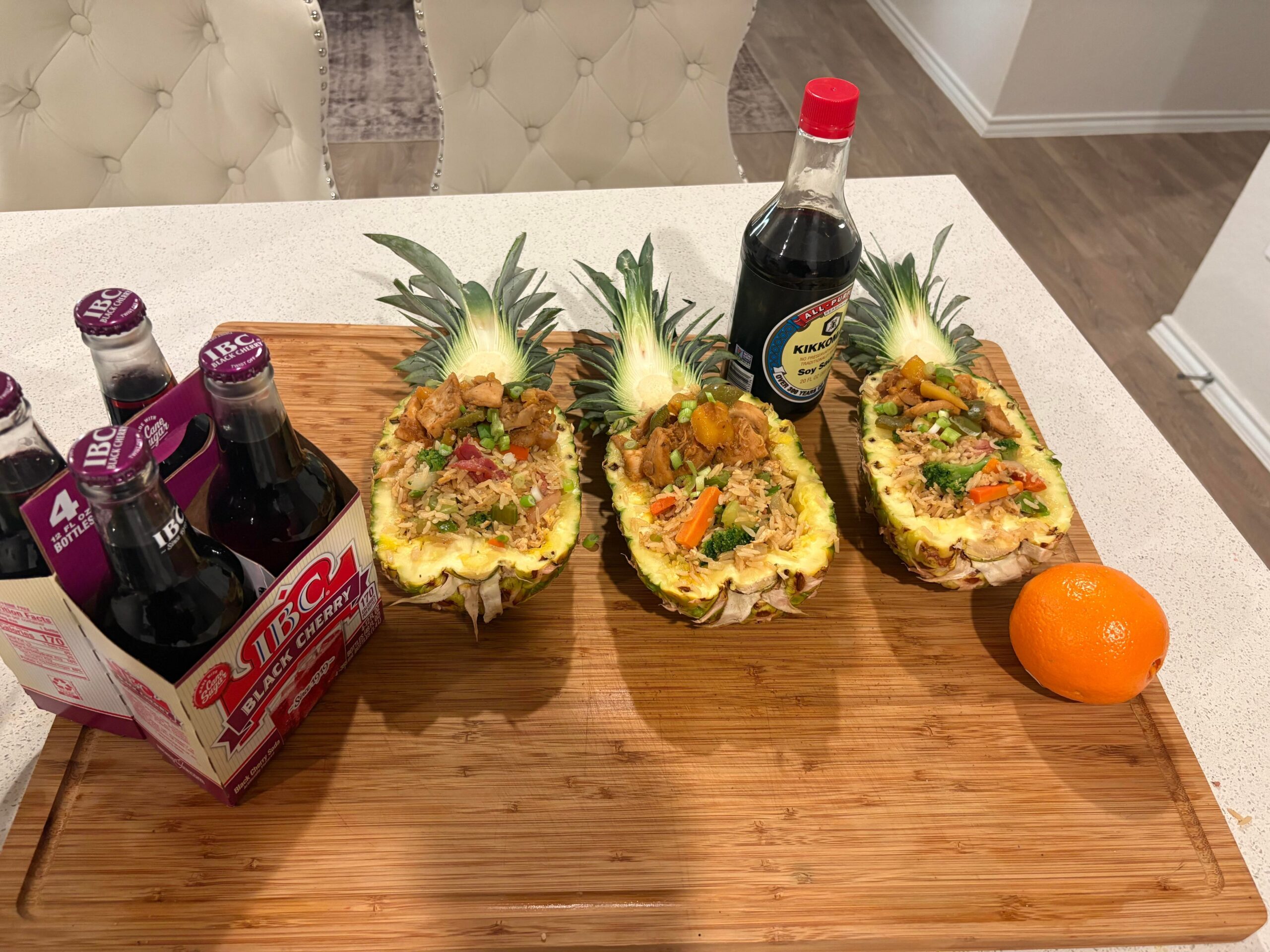 マンゴーグレーズのパイナップルチキン入りチャーハン(パイナップルライス)だよ!