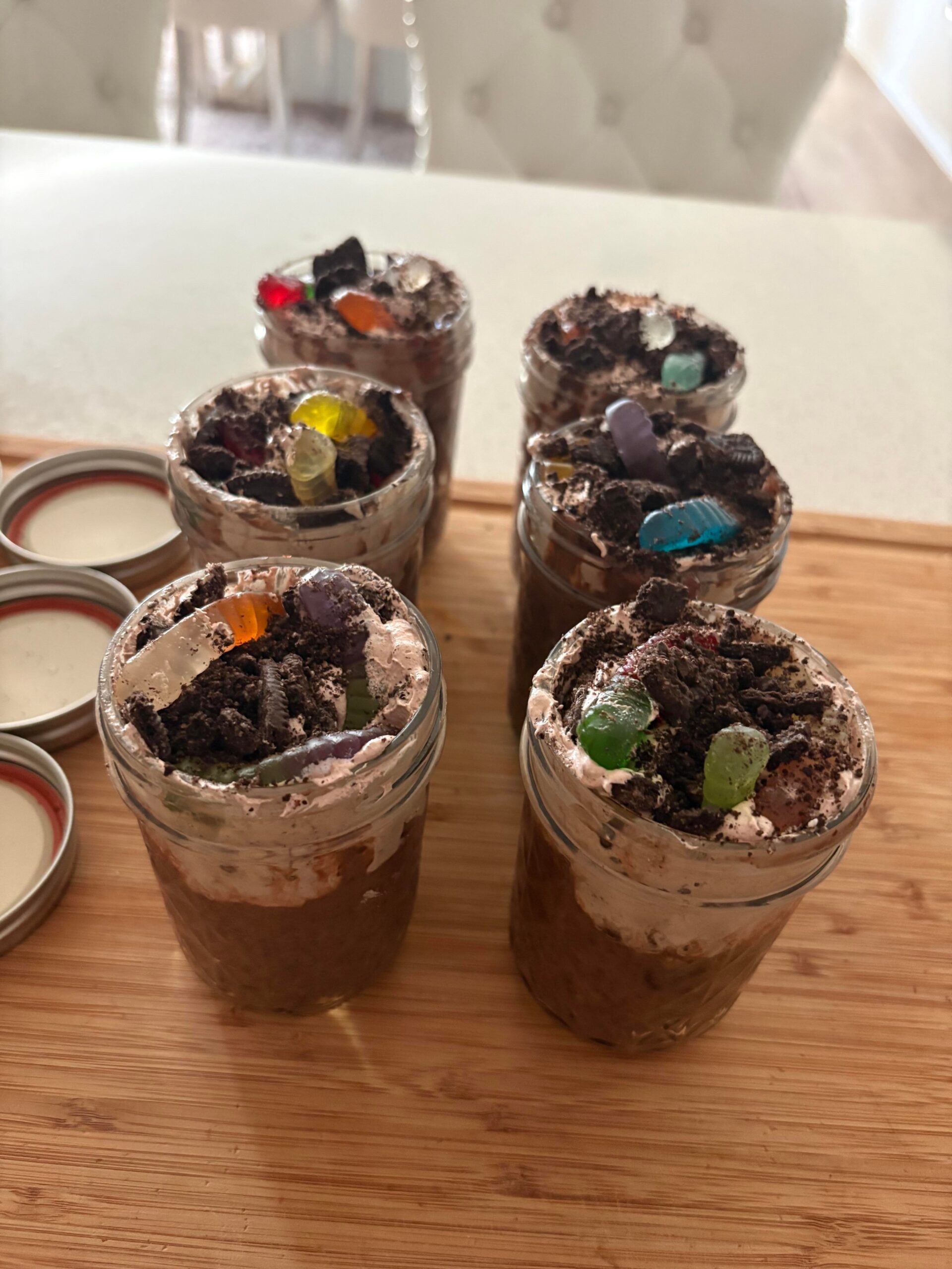 あとはオレオ・お気に入りのグミワーム・ホイップクリーム(クールホイップ)を用意して瓶に重ねて層にするだけ!