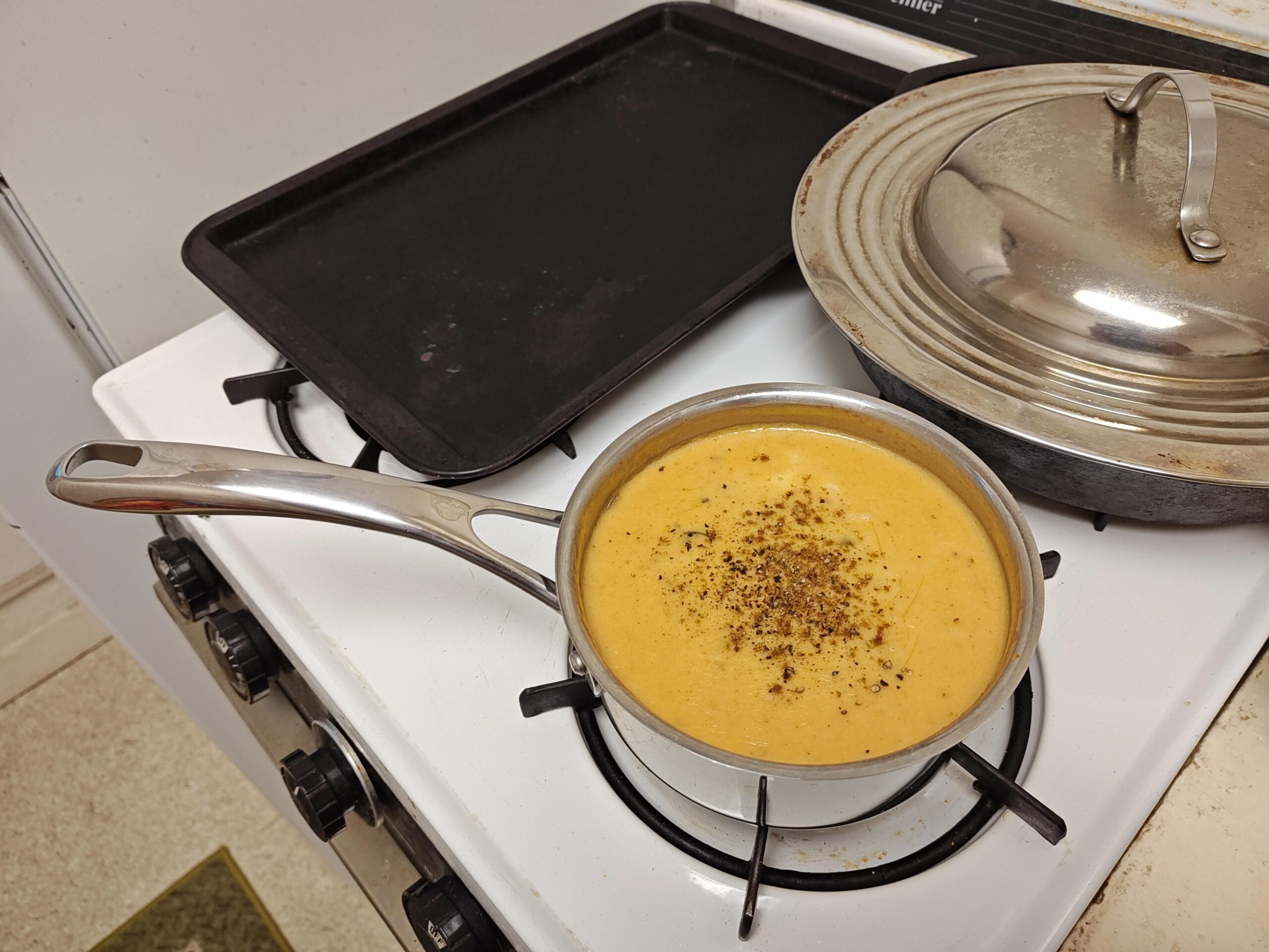 作り方メモ:まずバターと少量のチキンブイヨン・小麦粉でルー(Roux)を作る。